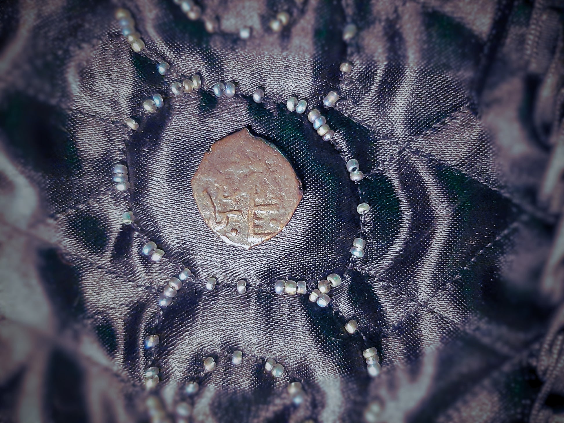 Medieval coin from the Near East, from the Ayyubid dynasty (1171-1260 AD). The coin is rather small, very dark in color, and worn on both sides. Still, some decoration remains. Slightly asymmetrical in shape.